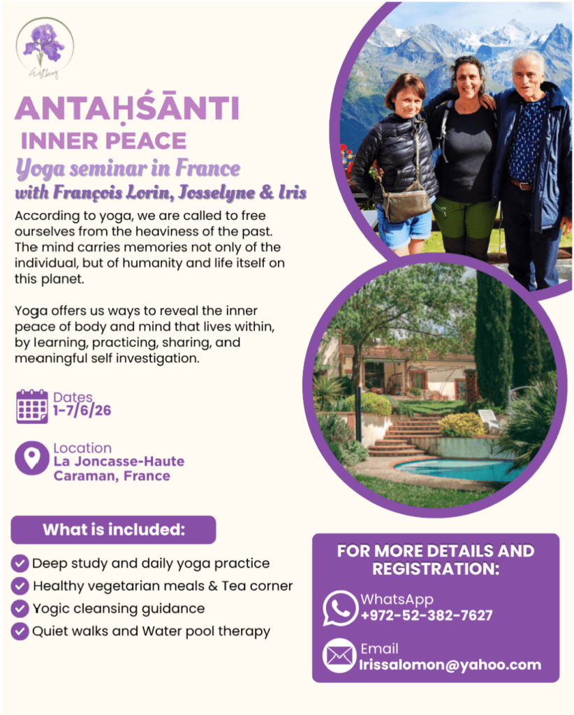ANTAHSANTI INNER PEACE, Juillet 2026BeKl28 avril 2026Stages-ateliers For englsih spealing people only. Stage en anglais Avec François Lorin, Josselyne et Iris Du 1er au 7 juillet 2026. La Joncasse-Haute Caramance, France
