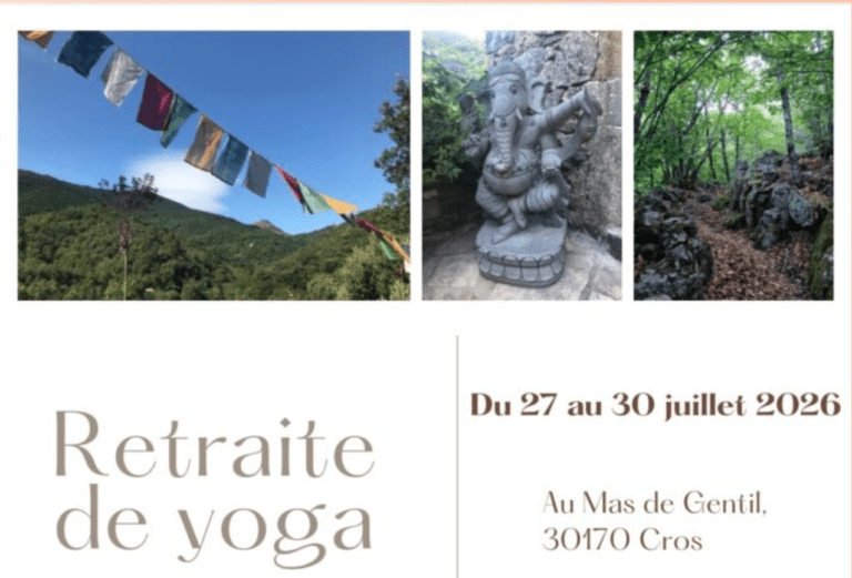 Julie Gavalda Cette retraite vous permettra d’approfondir la pratique du yoga, ou de la découvrir, dans un lieu propice, écrin de verdure, à la naissance du Vidourle. Pendant ces quelques jours, nous explorerons ce qui permet à notre humanité de…