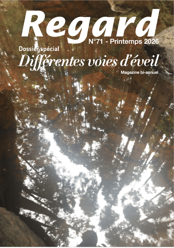 Dans ce numéro de Regard 71 qui paraîtra en mars 2026, nous explorons « différentes voies d’éveil ». Nous avons la chance que des adeptes d’autres communautés spirituelles aient accepté de nous expliquer en quoi leurs pratiques constituent un chemin vers l’éveil. Ainsi, vous trouverez des articles sur le bouddhisme, sur le soufisme, sur l’advaïta vedanta, la kabbale, le chamanisme et le yoga aussi ! Vous pourrez lire également quelques textes tirés du Tao, le témoignage d’un éveil arrivé soudainement et quelques très beaux écrits de nos adhérents sur l’éveil par la Vie, l’éveil par les rêves aussi; et même un article sur Avalon.
