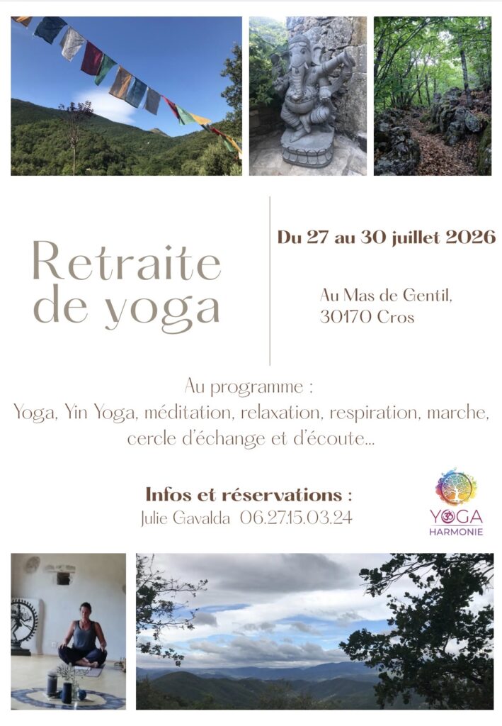 Cette retraite vous permettra d’approfondir la pratique du yoga, ou de la découvrir, dans un lieu propice, écrin de verdure, à la naissance du Vidourle. Pendant ces quelques jours, nous explorerons ce qui permet à notre humanité de s’épanouir, de s’équilibrer et de vivre les vagues de l’existence en s’accompagnant pas à pas, avec les piliers sur lesquels reposent le yoga.